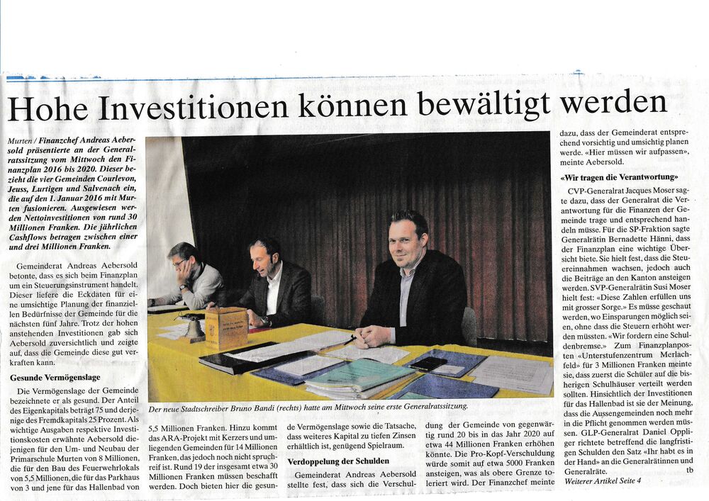 Anlässlich der Generalratssitzung vom 14. Oktober bekannten sich im Zusammenhang mit dem Finanzplan und der darin prognostizierten Zunahme der Verschuldung sämtliche Fraktion zu mehr Sparwillen. Doch, was die Ratslinke zusammen mit der CVP und der glp dann ca. 15 Minuten später beim nächsten Geschäft zum Betriebskredit für das Museum veranstaltete, war bereits wieder das pure Gegenteil: